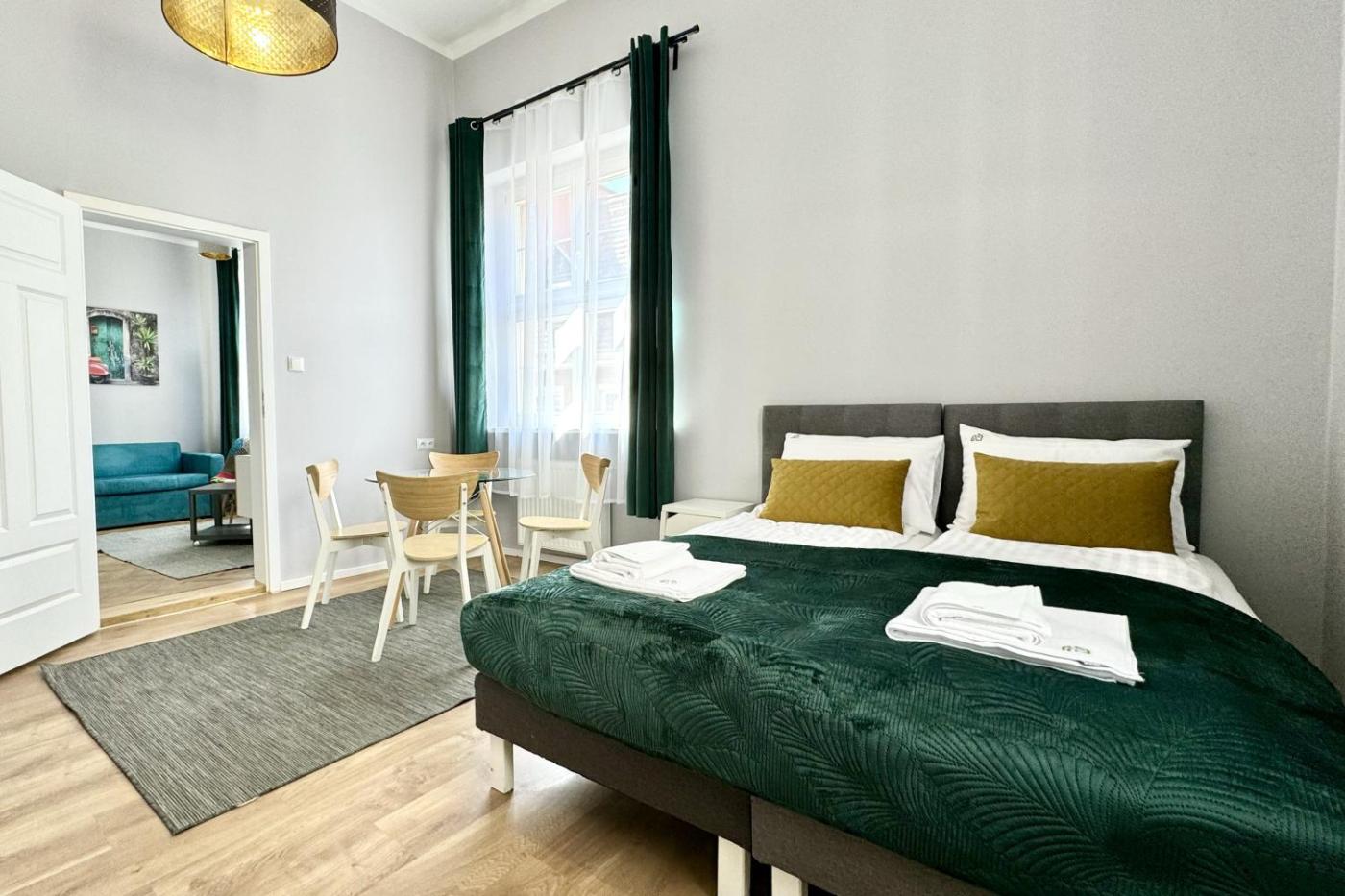 Apartament typu Superior z 2 sypialniami. Ten przestronny apartament obejmuje salon, 2 oddzielne sypialnie oraz łazienkę z prysznicem i bezpłatnymi przyborami toaletowymi. Posiłki można przyrządzać w kuchni z lodówką, zmywarką do naczyń, przyborami kuchennymi i płytą kuchenną. Dodatkowe udogodnienia w tym apartamencie z widokiem na miasto to telewizor z płaskim ekranem i dostępem do serwisów streamingowych, pralka, prywatne wejście oraz zestaw do parzenia kawy i herbaty. W tej opcji zakwaterowania jest dostępnych 5 łóżek. Apartament - 7 osobowy. Powierzchnia pokoju ok.: 63 mkw. ;