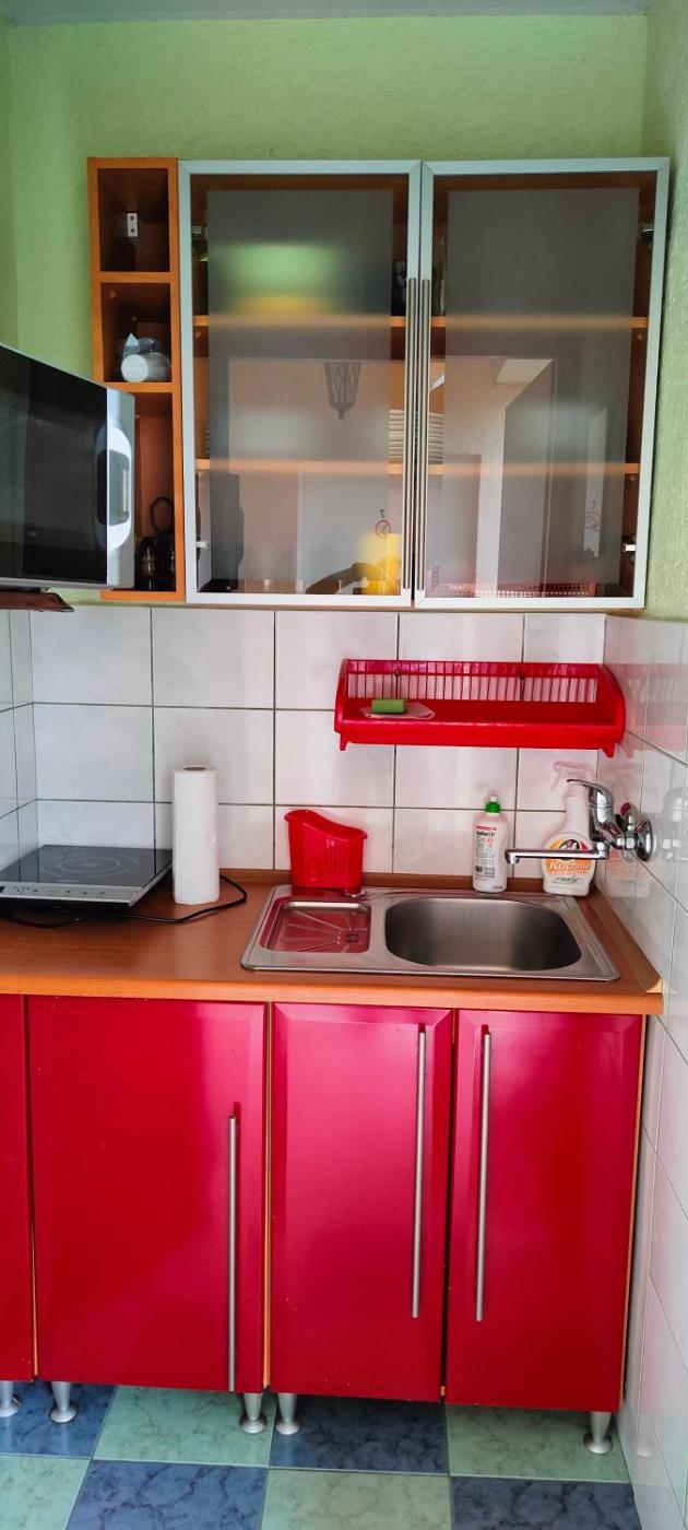 Pokój trzyosobowy z widokiem na ogród. The triple room features a tiled floor, as well as a private bathroom featuring a shower. Guests will find a refrigerator, kitchenware and a microwave in the kitchenette. The triple room also has a barbecue. The triple room offers a flat-screen TV, a private entrance, a wardrobe, an electric kettle as well as garden views. The unit offers 2 beds. Pokój Trzyosobowy - 3 osobowy. Powierzchnia pokoju ok.: 16 mkw.